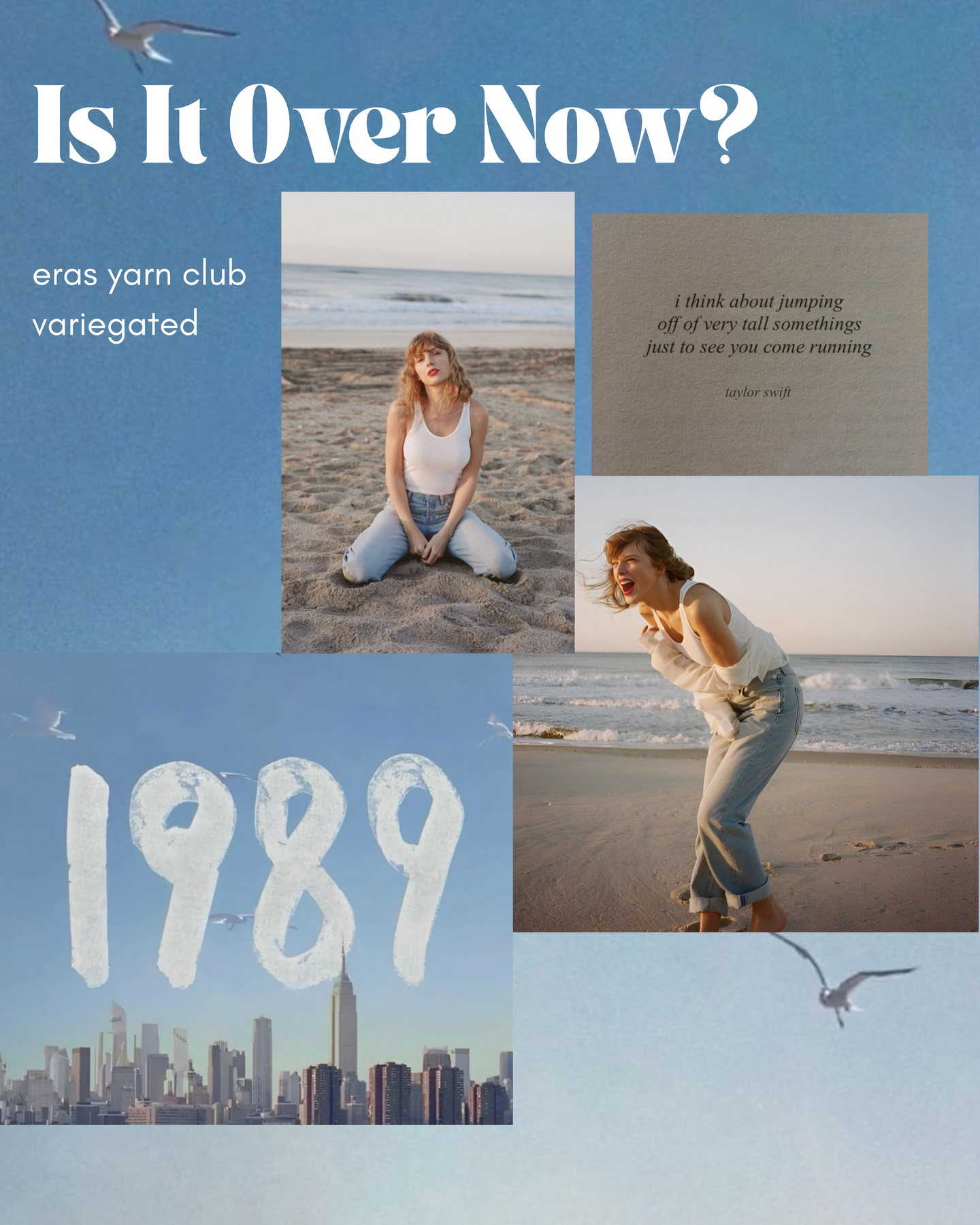 Our July club is inspired by Is It Over Now? a vault track from 1989 (Taylor's Version). A poetic look at the messy blurred lines of an on-again, off-again relationship. Phrases like "Two, three hundred takeout coffees later I see your profile and your smile on unsuspecting waiters" conveys many mundane months passing and the enduring mental presence of a past love. Our variegated colorway will represent this song's example of both Swift's lyrical brilliance and the relatable emotional depth to her music.