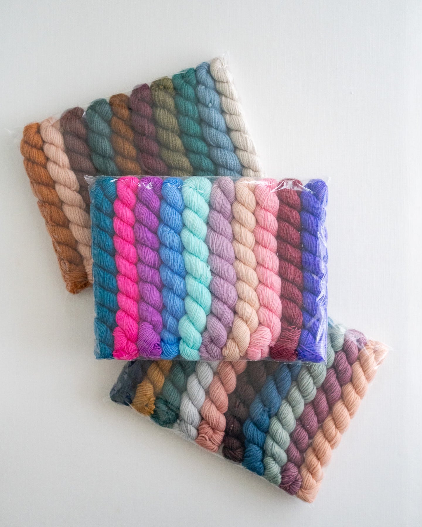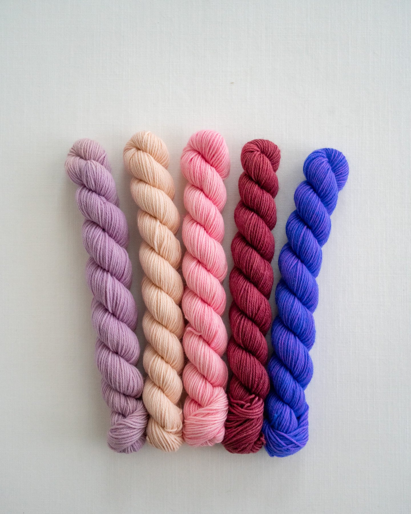 Our annual Oopsie Sale is here! Minis are available in 5 or 10 skein bundles on the following base options: Nylon Sock (2 ply), Nylon Sock (4 ply), Classic DK, or Nylon DK.