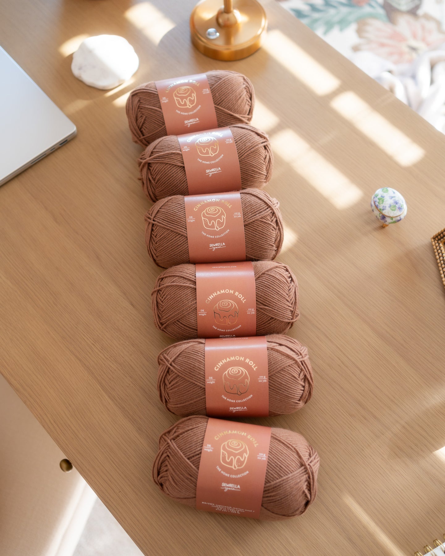 Cinnamon Roll is the exact color of cinnamon sugar filling, a warm medium brown with slight red undertones. It is gorgeous alone or paired with other Home colorways like Chamomile or Garden Rose.