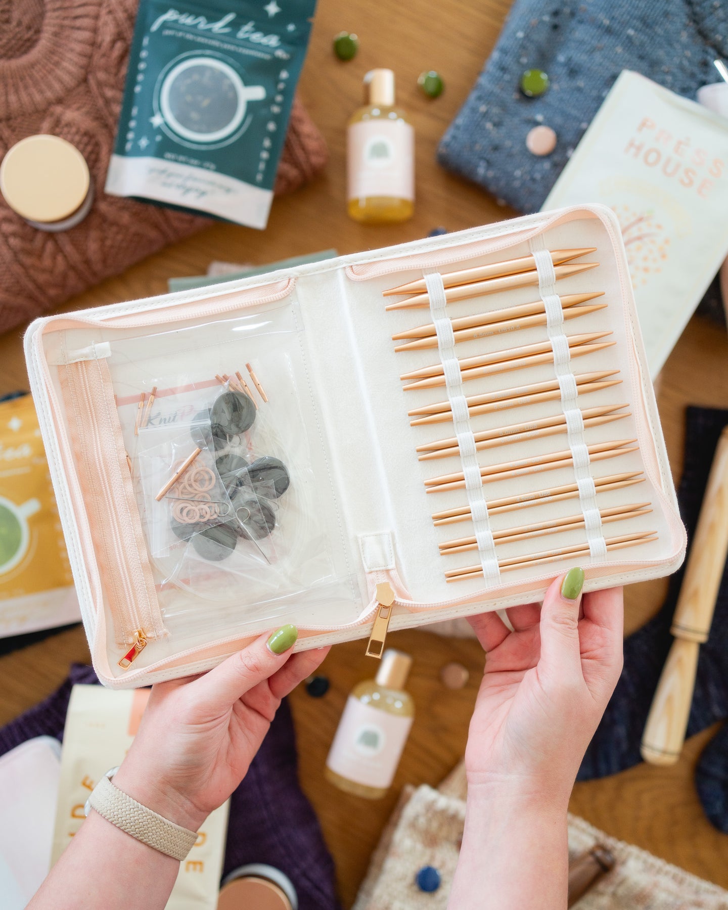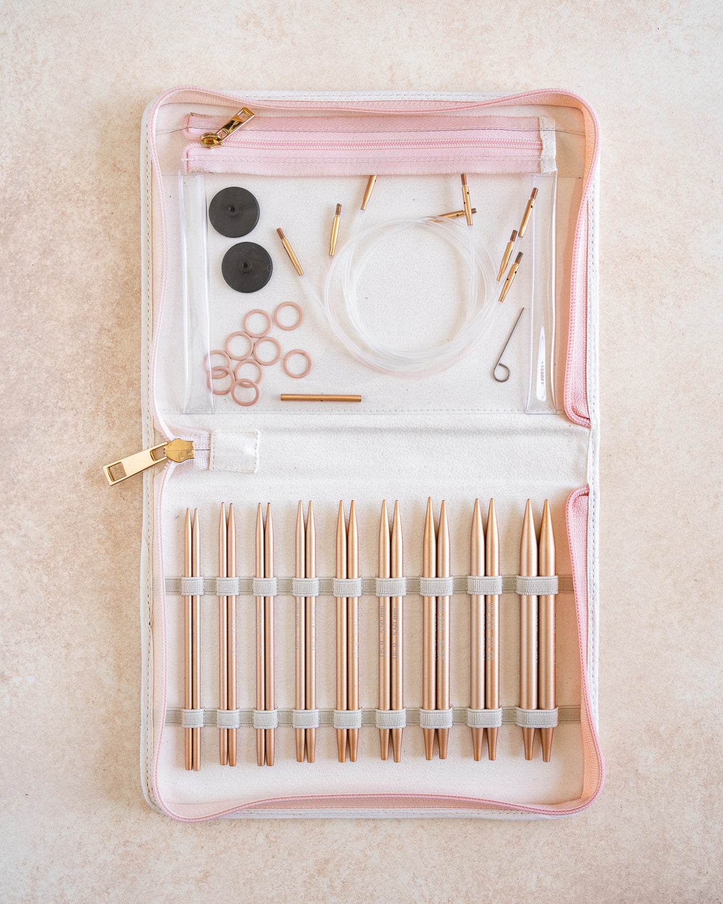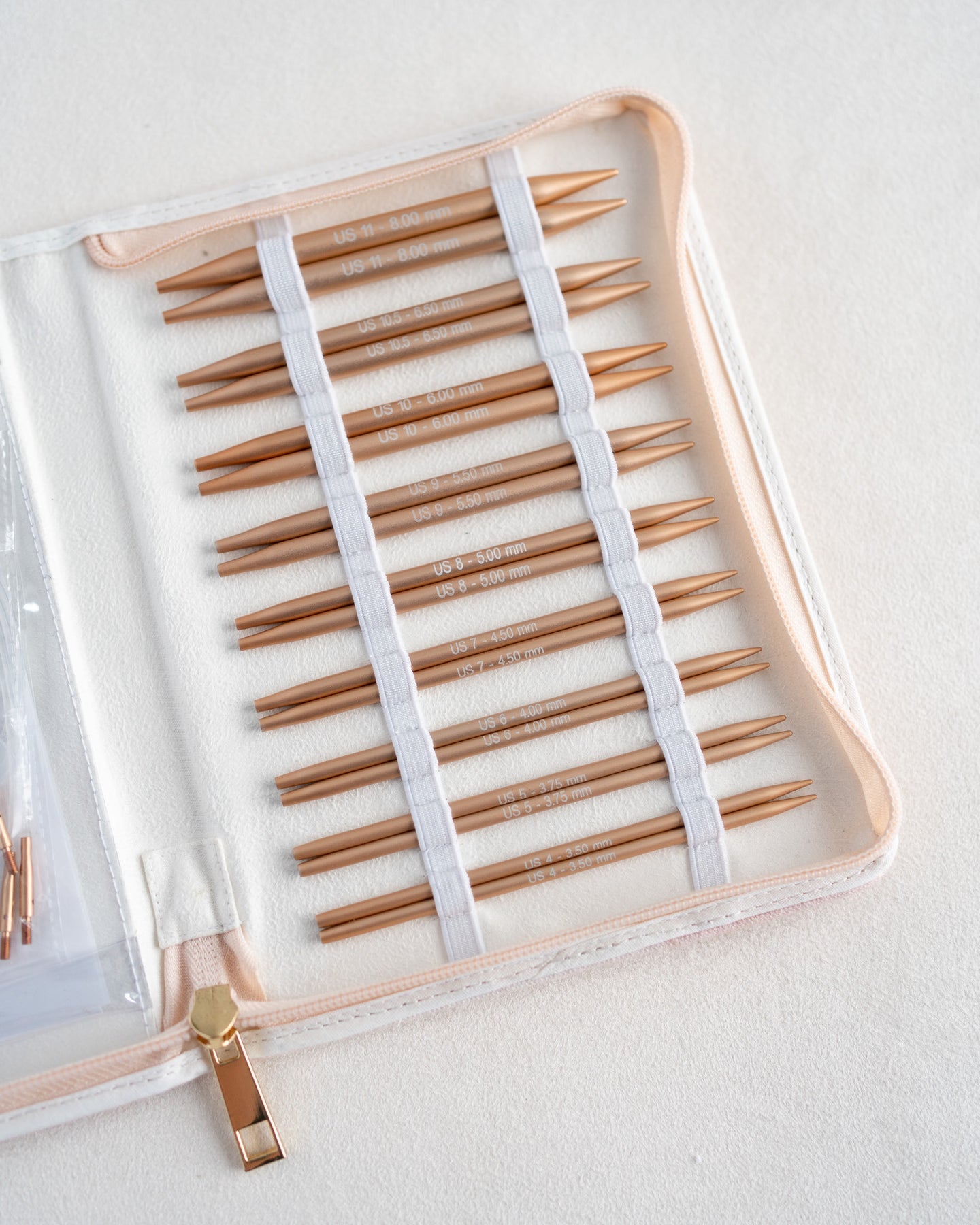 This set is gorgeous to look at, but also a pleasure to use. The stitch markers are a lovely little addition as well! I love everything about the set, and the only thing that would make it better is if I could buy replacement needles a la cart (my US 6 easily get more love than the others and have started to tarnish as a result). The tarnishing isn't even a deal-breaker for me - it just shows that YES I do in fact use my needles!